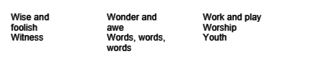 One theme can deliver a variety of foci for collective worship. It is important not to exhaust a theme, but equally important not to overlook the opportunities it may offer. The easiest way to ‘break down’ a theme is to brainstorm it with colleagues, selecting those aspects most suitable for promoting school issues and concerns, whilst taking account of the ages, ability and aptitudes of the students.